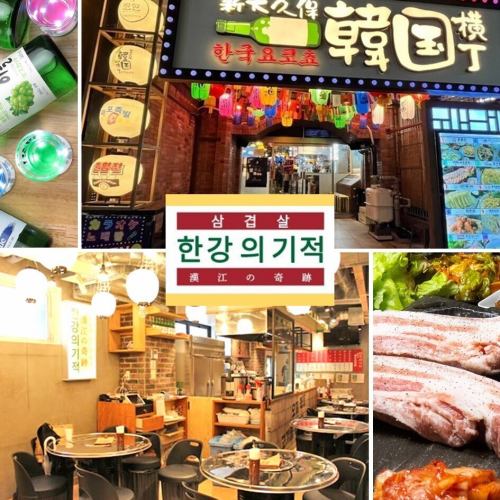 【新大久保韓国横丁 漢江の奇跡(はんがんのきせき)】新大久保駅【徒歩4~5分】改札を出て、目の前の信号を渡り右方向へ一直線♪交番を超えてすぐ♪【新大久保韓国横丁】《予約が満席の場合は『韓国横丁』他店舗でも即予約♪》(韓国料理/新大久保/食べ放題/飲み放題/サムギョプサル/ランチ/横丁/昼飲み)